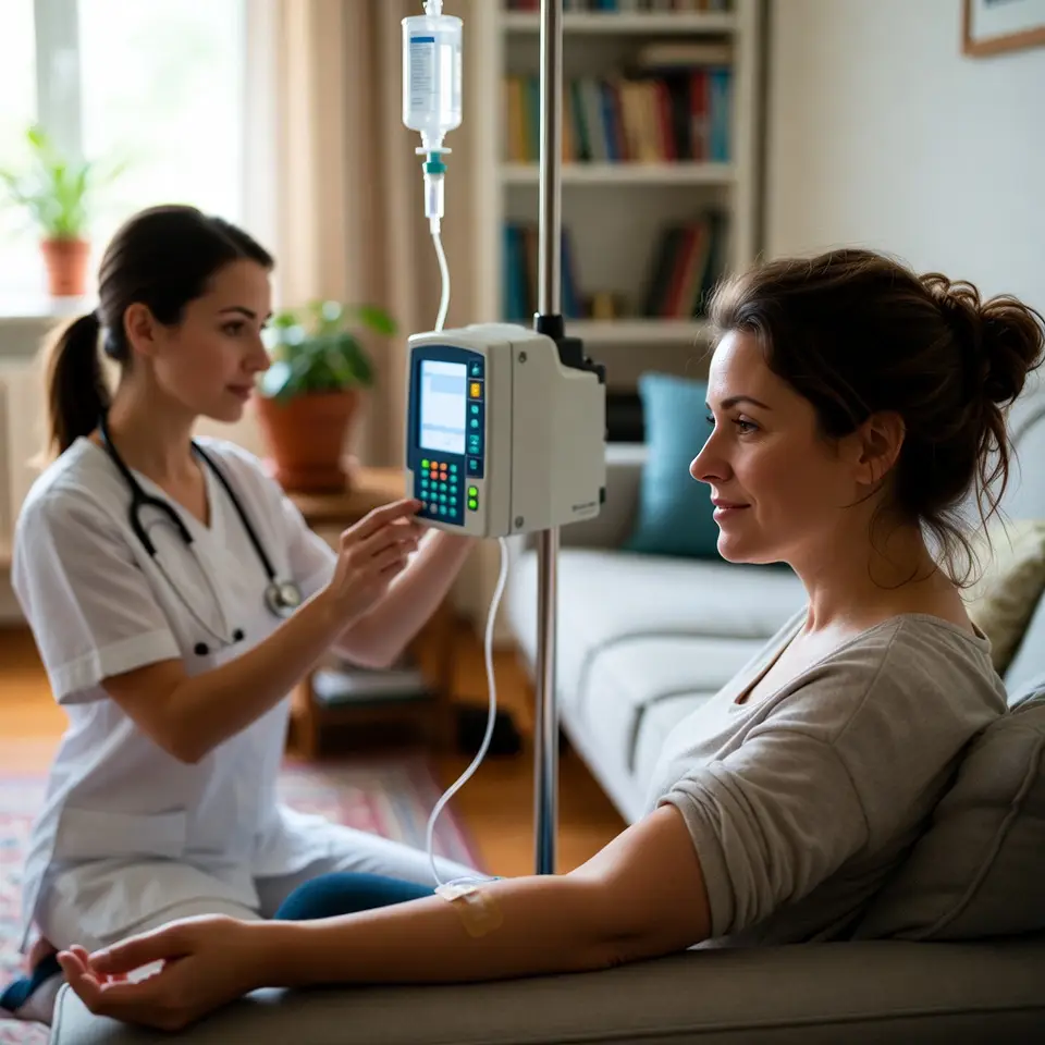 In an infusion center, nurses typically monitor multiple patients at once. In home infusion, your nurse is focused only on you — seeing how you respond to treatment, answering your questions, and ensuring your comfort.